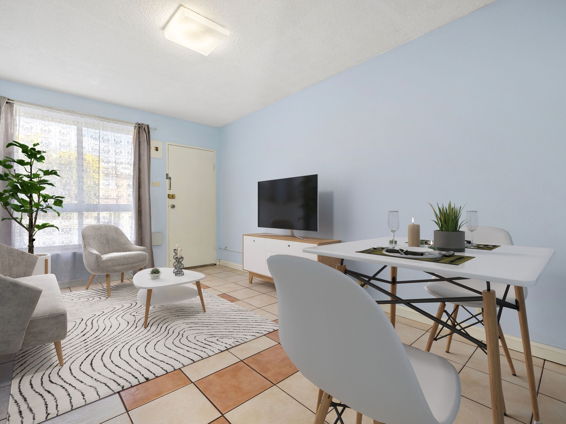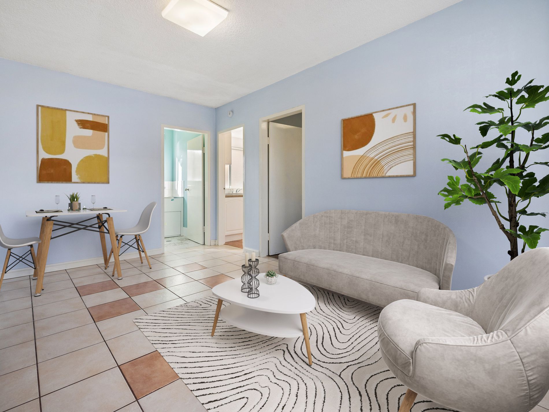 Tiled living area for easy maintenance