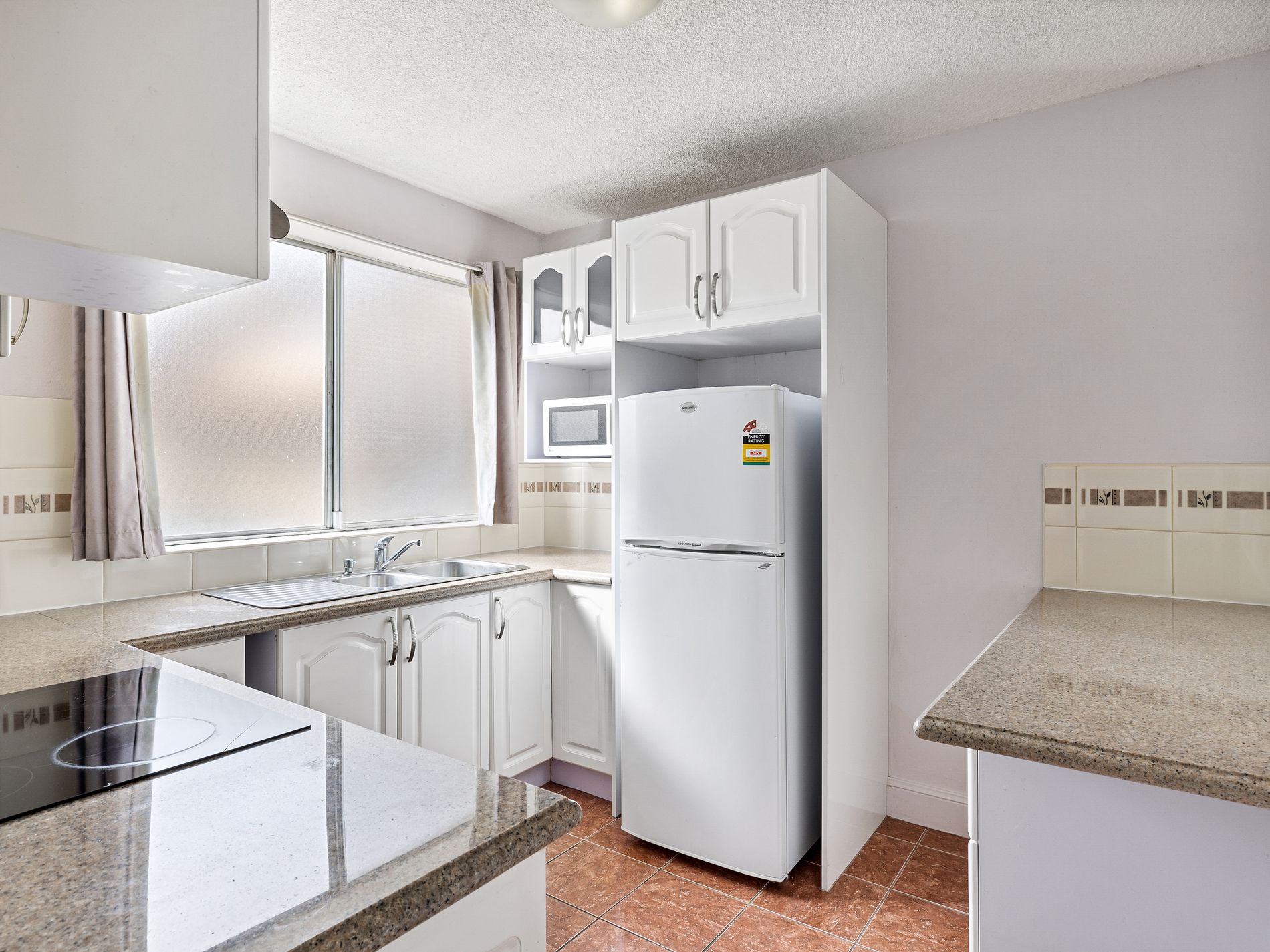 Inside, you’ll find a light-filled living area flowing seamlessly into a renovated kitchen, complete with an Omega electric stove, range hood, refrigerator and ample cupboard space. The generously sized bedroom features a large built-in robe, while the bathroom includes a combined bathtub and shower.
