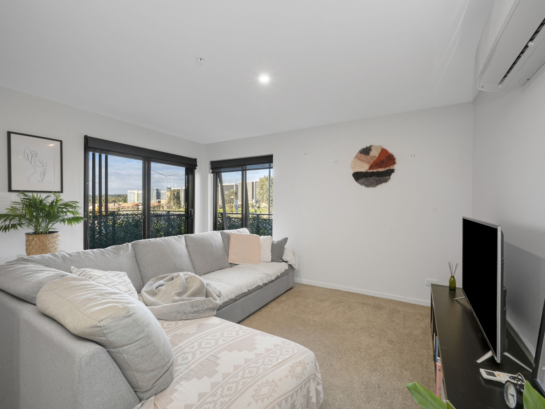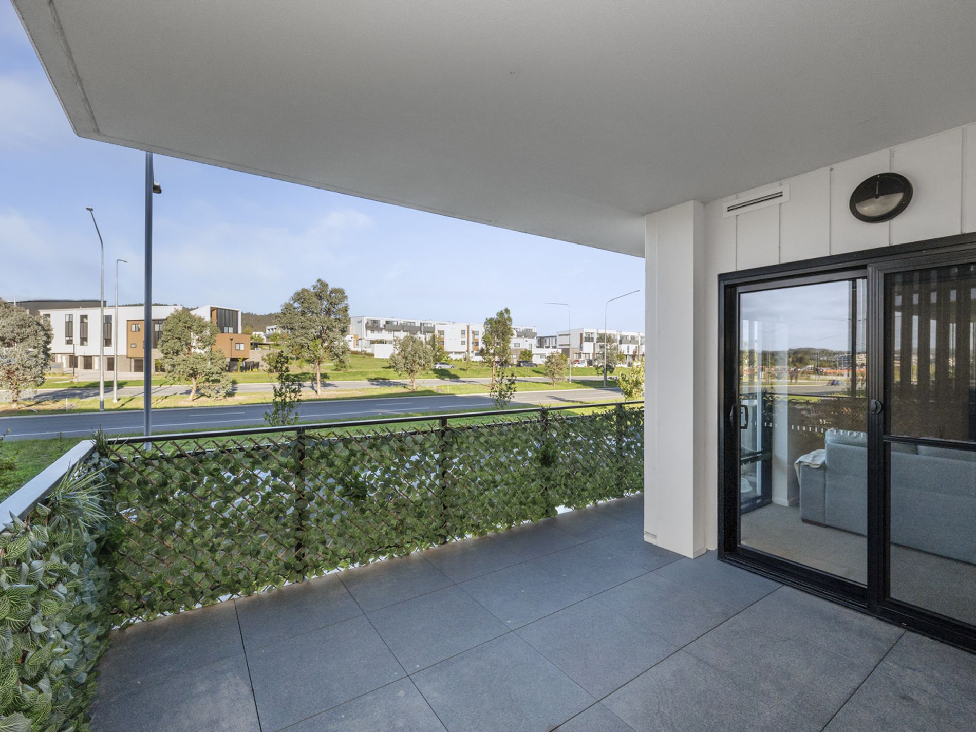 The spacious open-plan living area provides flexible furnishing options and flows seamlessly onto a large fully covered balcony, creating the ideal space for entertaining friends or relaxing year-round.